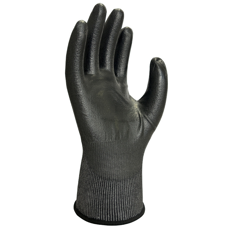 Shell 21 gauge blak special fibre(free of glass/steel fibre) with black Polyurethane(PU) smooth coating palm. Breathable back.