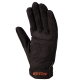 Microfiber palm with black spandex between fingers & back. Neoprene reinforced vulnerable zone. Knuckle protected by Neoprene band, elastic cuff & velcro closure.